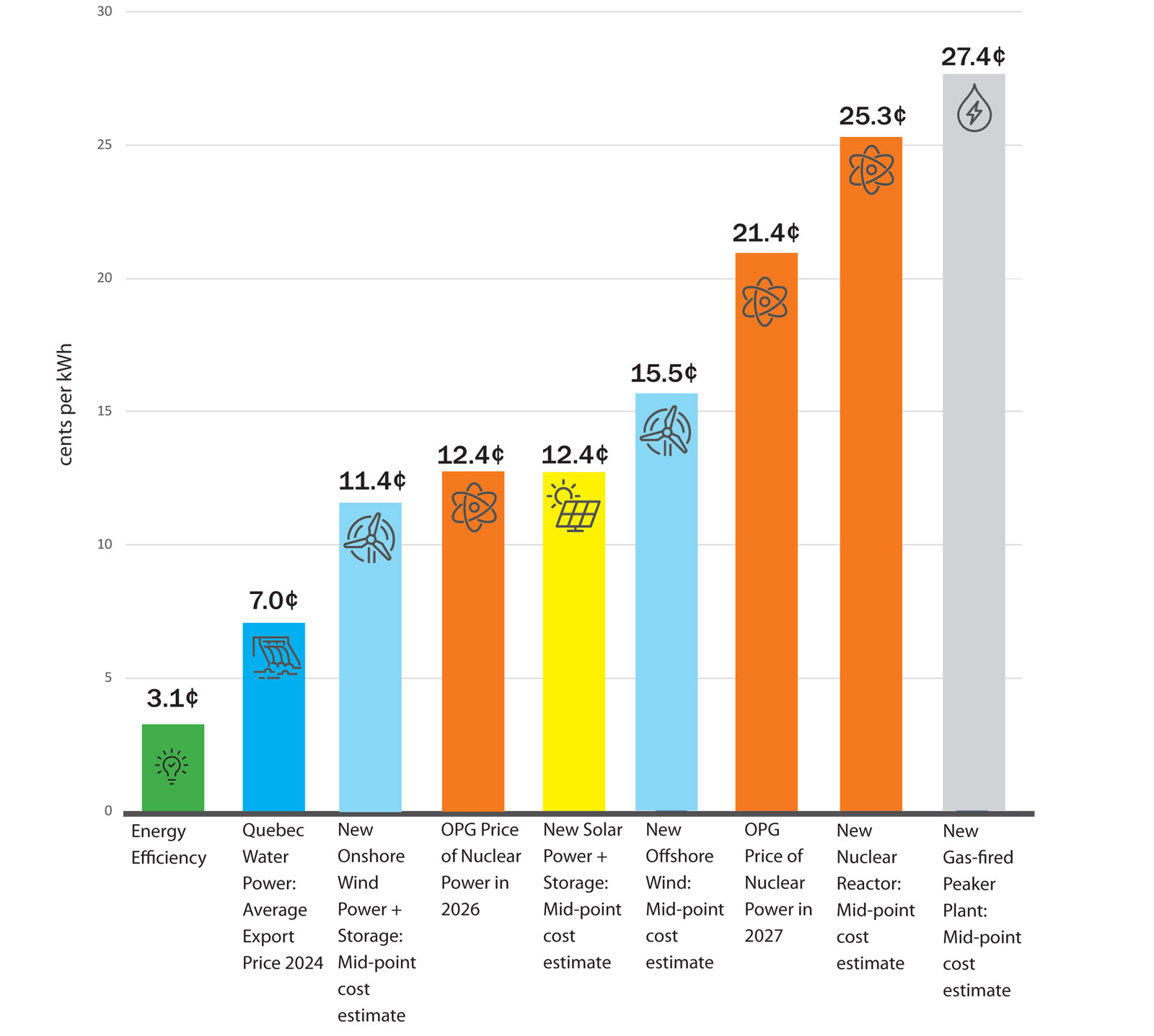 Ontario has many lower cost options for meeting its electricity needs than building/rebuilding nuclear reactors and building new gas peaker plants.