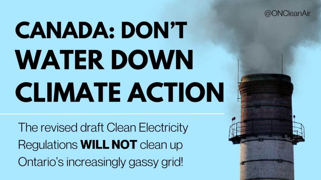The federal government’s revised draft Clean Electricity Regulations contain many large loopholes that will allow greenhouse gas emissions from Ontario’s gas-fired power plants in 2035 to exceed 2017 levels by 3 times.