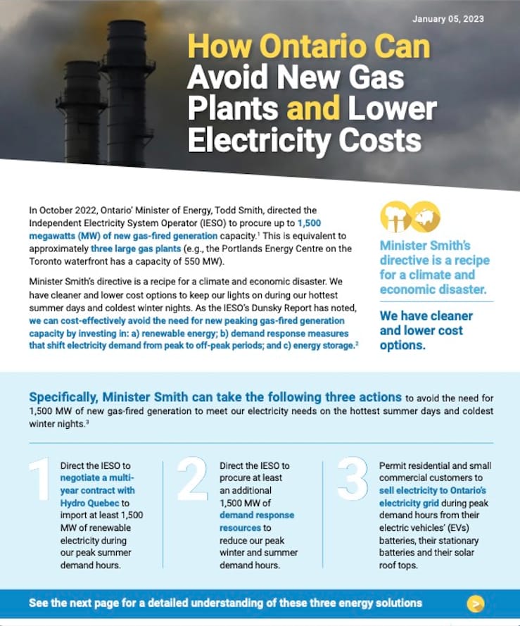 This factsheet explains how Ontario can avoid new gas plants and lower electricity costs by adopting three simple measures: