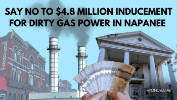 Ontario Power Generation (OPG) is offering the Town of Napanee $4.8 million to approve a giant new polluting gas plant. This is public money being used to try to sway the decision of council on a project that will lead to more local air pollution and more climate damage everywhere. That this is the best idea our publicly owned utility can come up with is alarming.