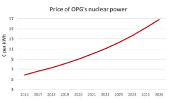 Ontario Power Generation (OPG) is seeking permission from the Ontario Energy Board to increase the price of its nuclear power by 11% per year for each of the next ten years.