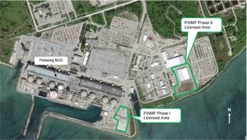 Currently, the Pickering Nuclear Station has two “dry storage” facilities for the storage of spent nuclear fuel (and other radioactive wastes). These facilities currently store more than 340,000 highly radioactive spent fuel assemblies loaded in containers that each hold 384 assemblies. Radioactive assemblies more recently removed from reactors are stored in open water-filled pools. Roughly 400,000 spent fuel assemblies —more than half of Pickering’s current waste — are currently stored in these pools. Ontario Power Generation (OPG) is planning to add three additional radioactive waste storage buildings to the Pickering site, which would bring the total storage capacity up to 1,152,768 spent fuel assemblies, which is enough storage to continue to operate all six of Pickering’s operational reactors for a decade or more beyond 2024, which is when OPG currently says it plans to stop operating all of the plant’s reactors.