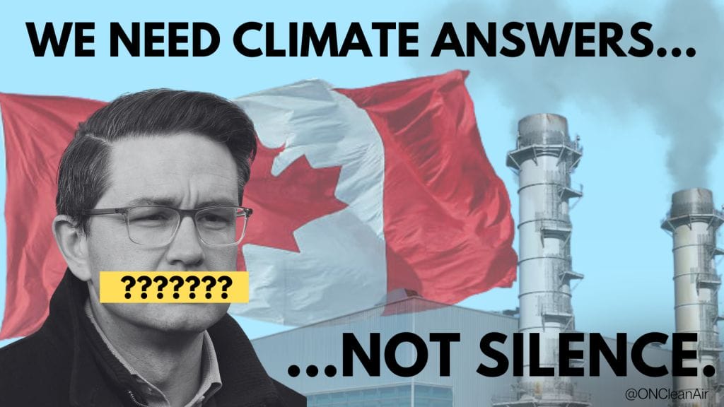 We asked candidates whether they would support Clean Electricity Regulations that would require Ontario’s electricity grid to be net zero-carbon by 2035. The Liberal, NDP and Green Party candidates all said YES. The Conservative Party candidate did not respond. Canadians deserve a clear answer on this simple question.