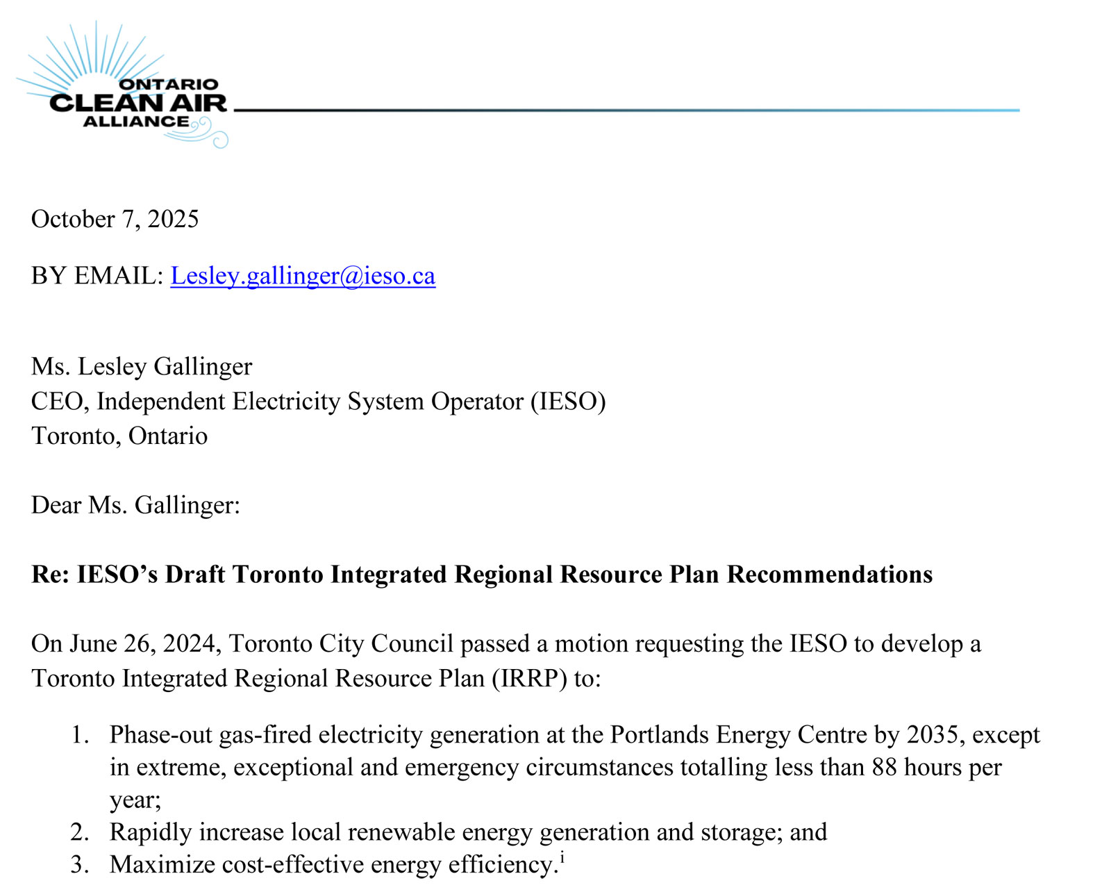 The OCAA review of the Independent Electricity System Operator’s plan for the future of Toronto’s electricity system (IRRP) finds that the plan is weak and will not lead to a phase out of the Portlands gas-fired power plant, the single largest greenhouse gas and NOx polluter in the city.  In particular:
